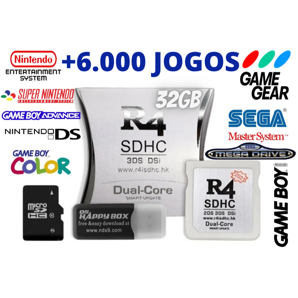 Cartucho R4 Gold Pro + 32gb lotado de jogos Nds + 8 Emuladores Nintendo Ds Dsi 2Ds 3Ds