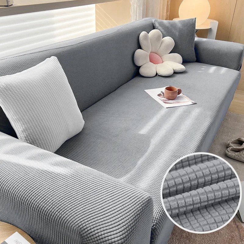 Capa De Sofá À Prova D'água Elástica De 1/2/3/4 Lugares Cor Lisa Jacquard Almofada Traseira Para Sala De Estar Decorar Milho Veludo Assento