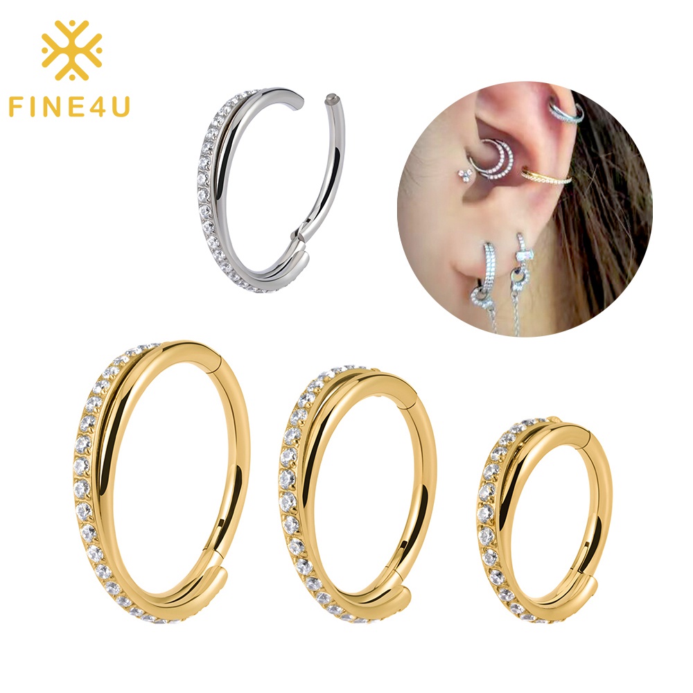 FINE4U Piercing Argola Titânio Segmentada Clicker Helix, Conch, Daith, Septo Cartilagem Septril, Rook, Nariz Hipoalergênico Anel