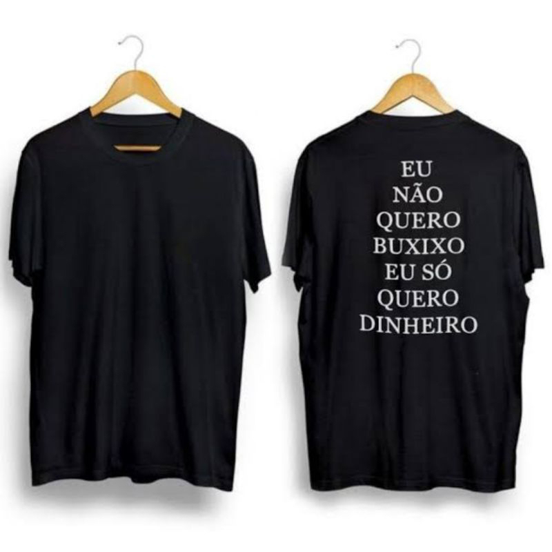 Camiseta Frase Eu Não Quero Buxixo Só Quero Dinheiro - Camisa Algodão Unissex Texto Meme Musica Zoio De Gato Tumblr