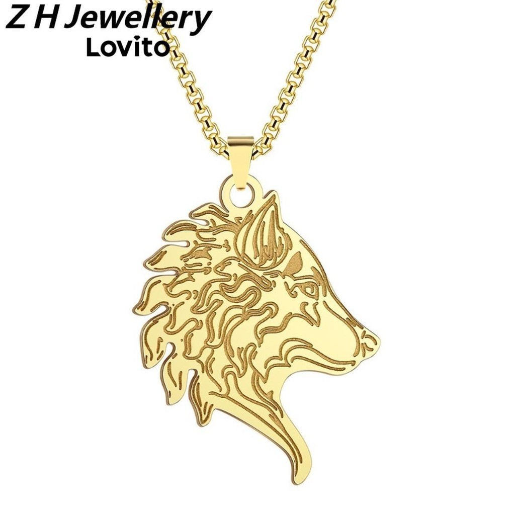 Lovito Colares Casuais De Alta Qualidade Com Corrente De Metal Liso E Cabeça De Lobo Para Mulheres LCS07126
