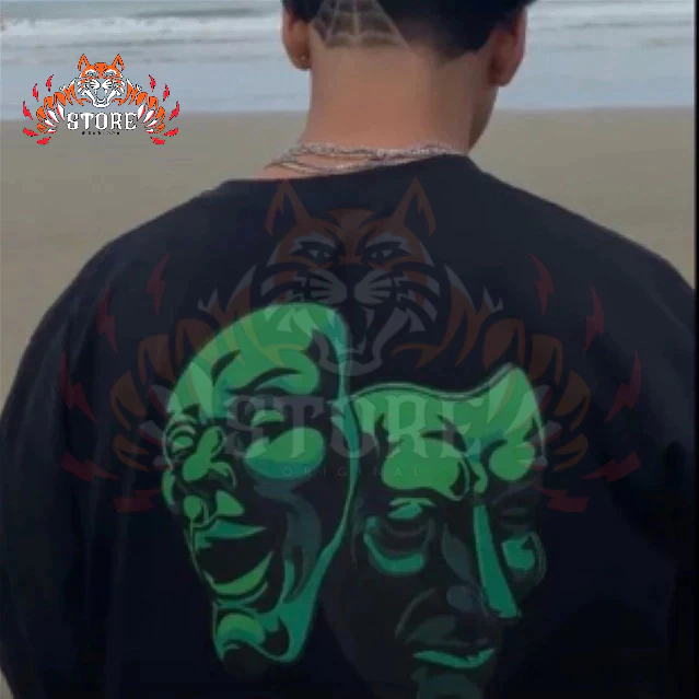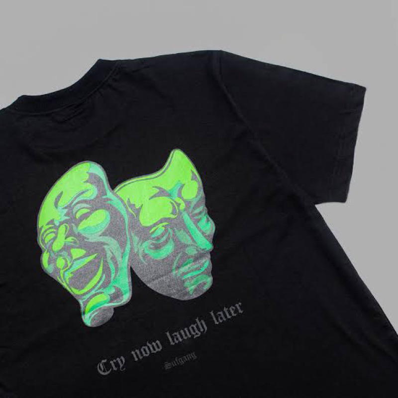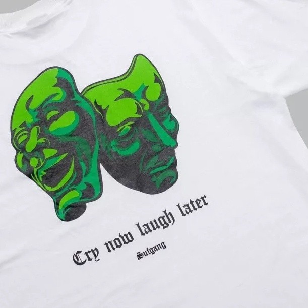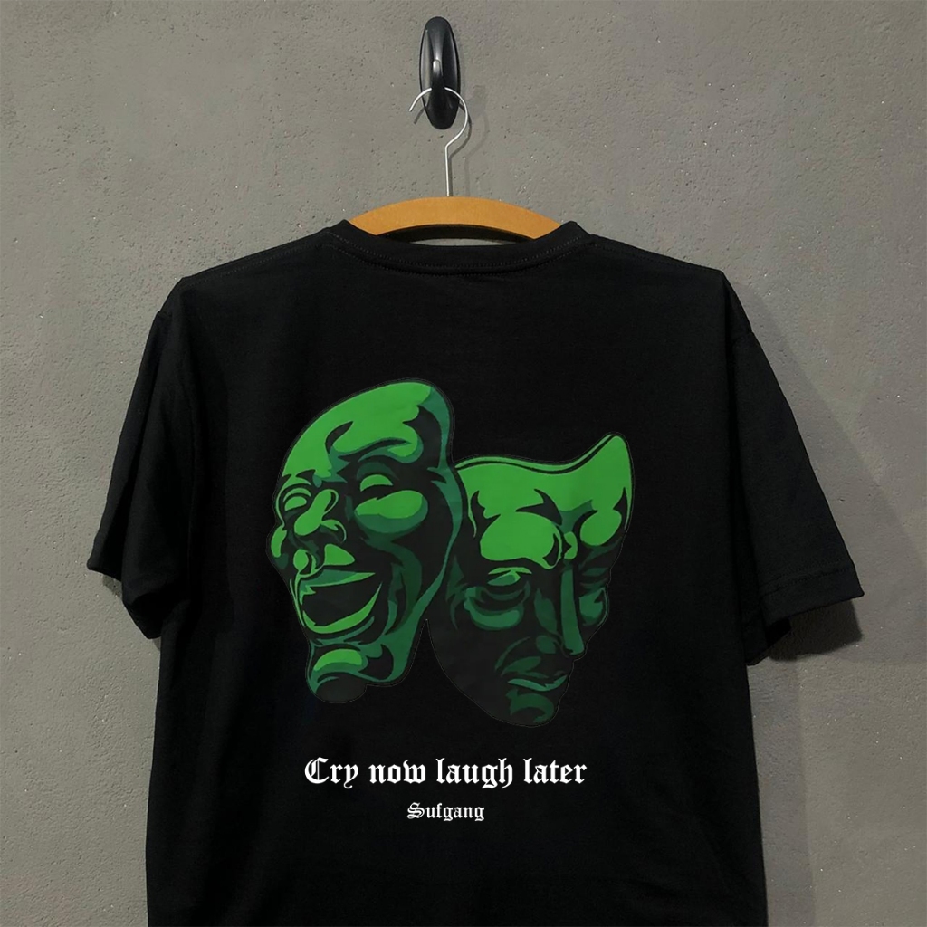 Camiseta Cry Now Laugh Later Máscaras verde oversized streetwear algodão sufgang