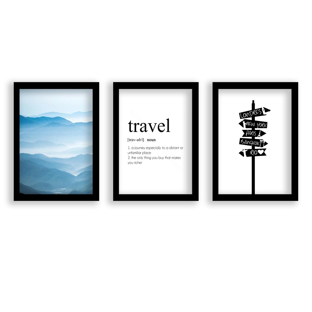 Kit 3 Quadros Decorativos Para Sala e Quarto Com Moldura Definição de Viagem
