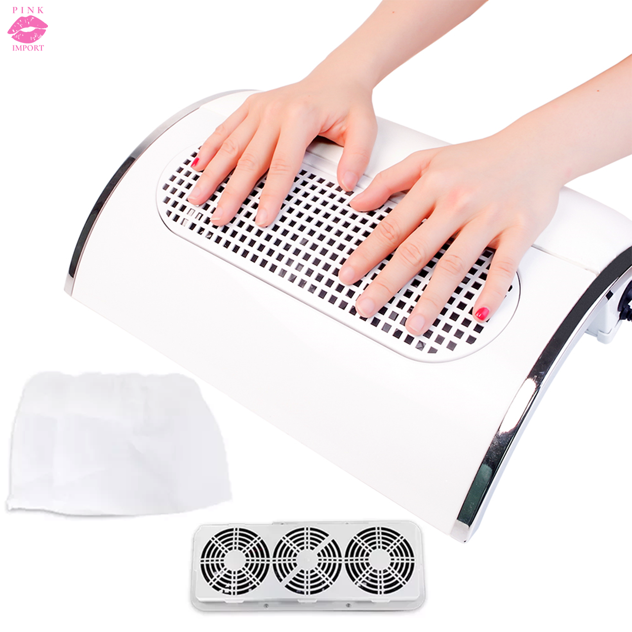 Aspirador Coletor de pó de Unha Sugador 3 Ventoinhas Manicure Profissional Alongamento Gel Fibra