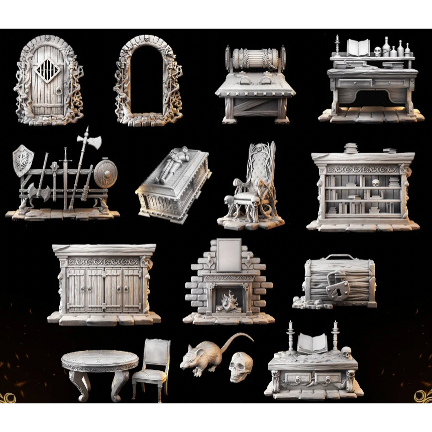 Miniaturas de Cenário - Móveis para Hero Quest, For The Quest, RPG, D&D e Zombicide