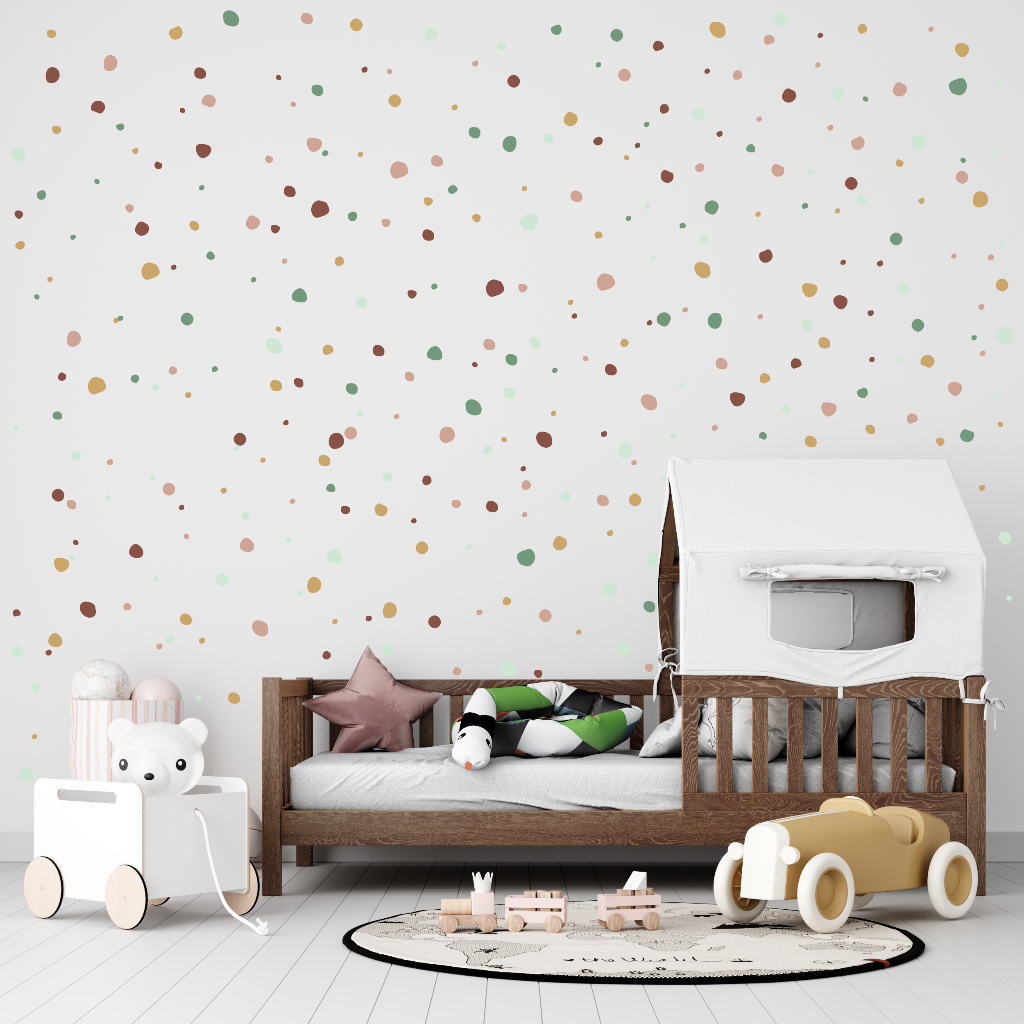 Adesivo de Parede Bolinhas Irregulares tons Verde claro e terrosos quarto infantil decoração menino menina delicado