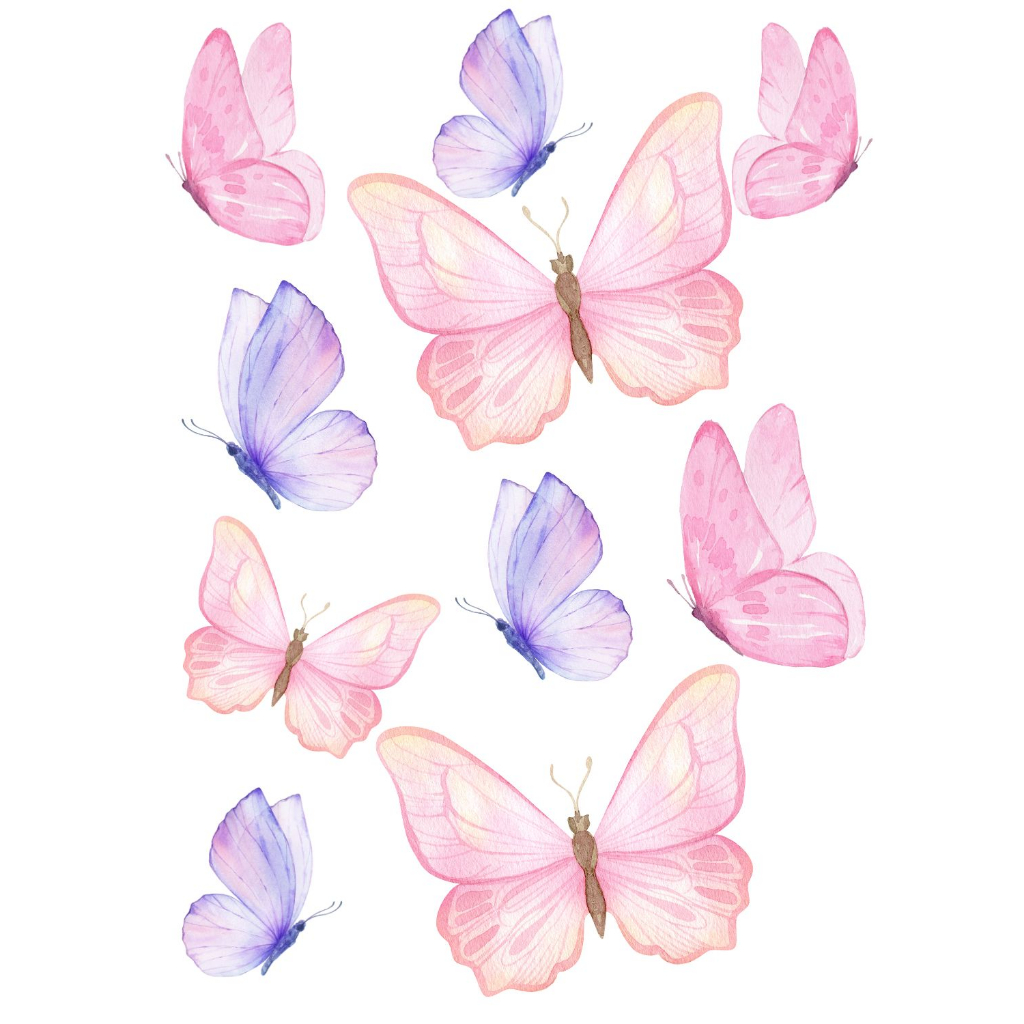 Papel de Parede Adesivo Infantil Quarto menina Borboletas Aquarelas