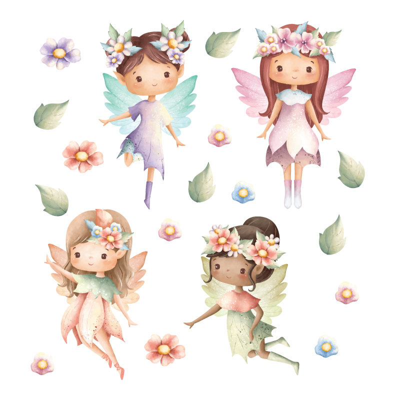 Adesivo de Parede Infantil Fadinhas Aquarela Quarto Menina Fada - 287ir