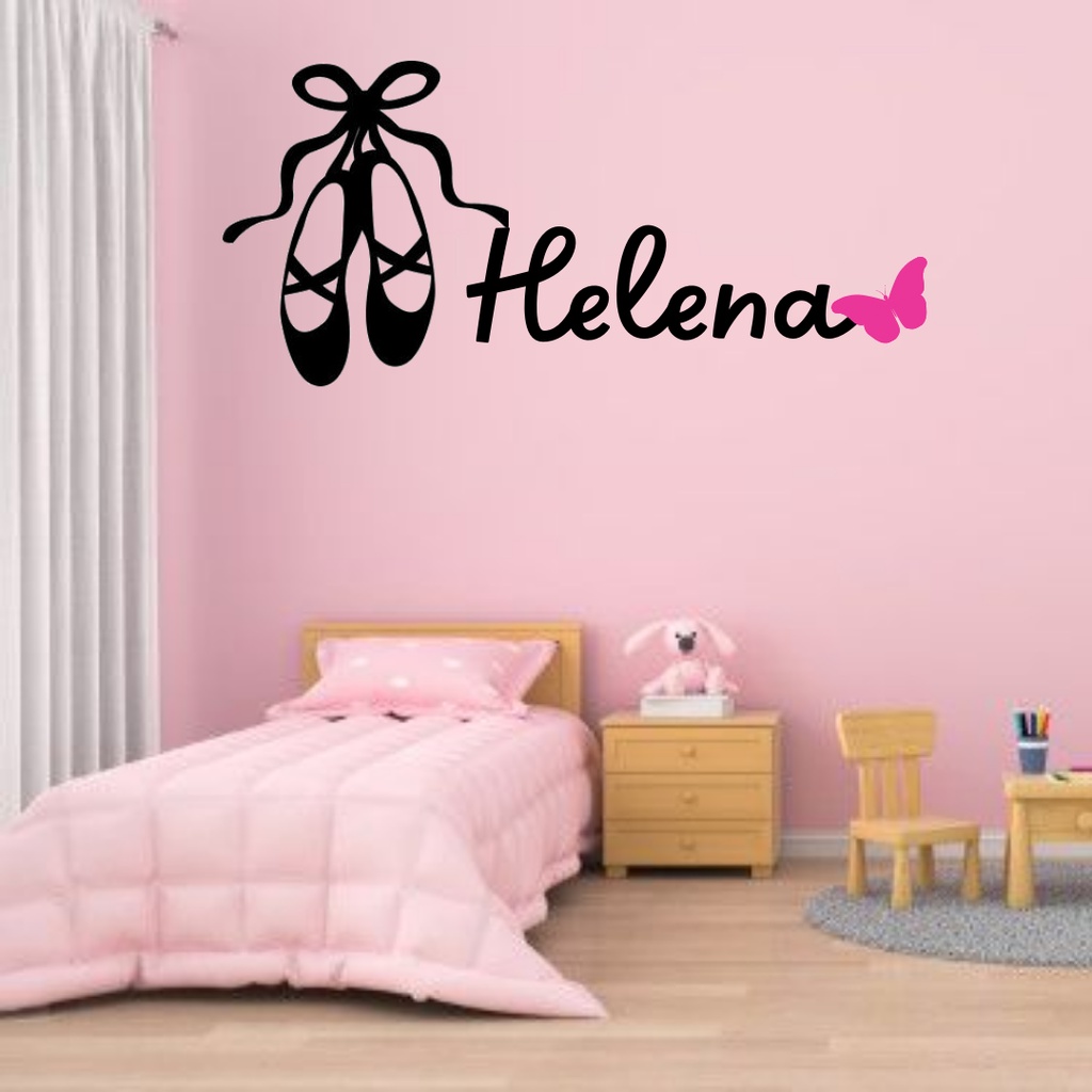 Adesivo De Parede Bailarina Sapatilha + Nome Borboleta Quarto Infantil Menina em vinil