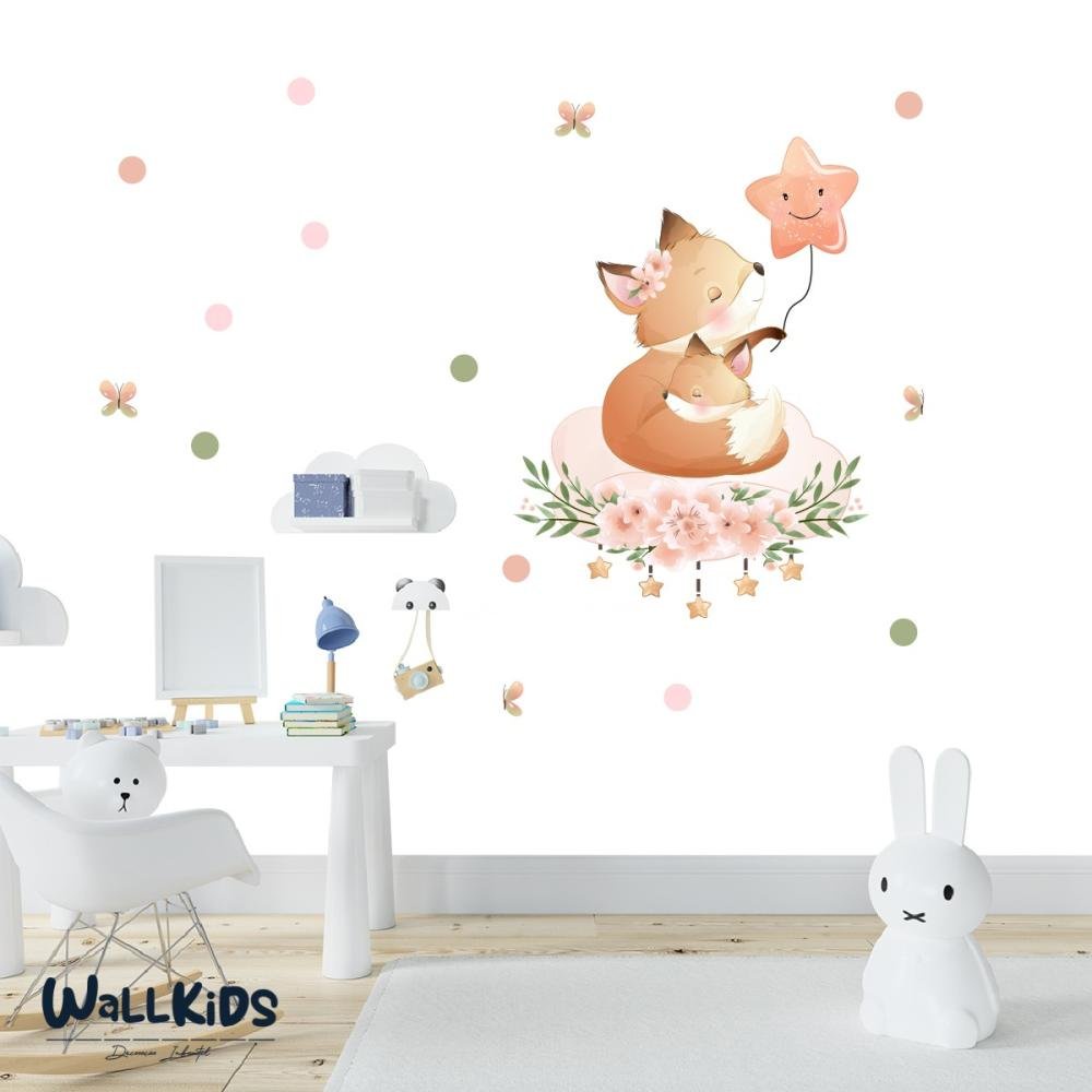Adesivo de Parede Infantil Mamãe Raposa Quarto Menina Floral