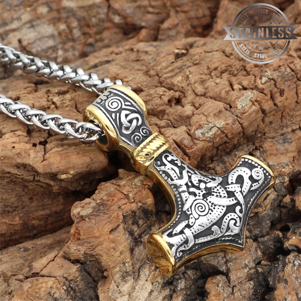 Colar Masculino Pingente Mjolnir Martelo Thor Triquetra Nórdico Acessório Viking Vintage Amuleto Amon Amarth Aço Maciço 55g