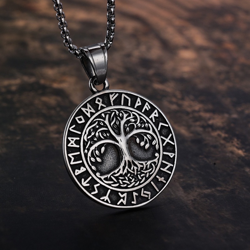 Vintage Nordic Viking Rune Talismã Árvore Da Vida Pingente Moda Masculina Colar De Aço Inoxidável Acessórios De Jóias