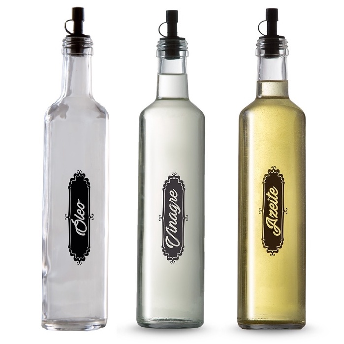 Vetrolar - Kit Galheteiro De Vidro Redondo 500ml 3 Peças ( Azeite / Óleo / Vinagre )