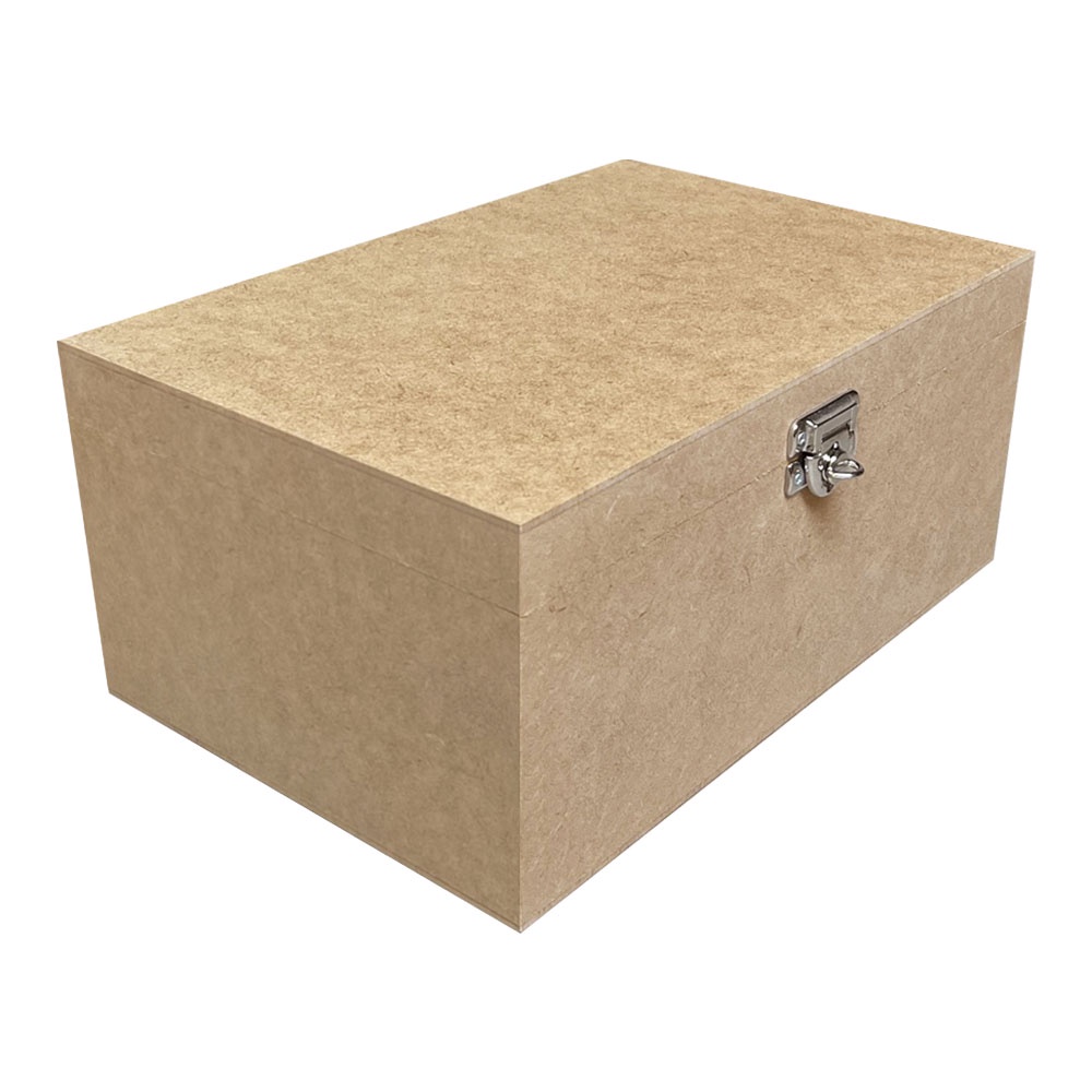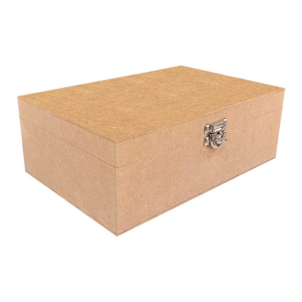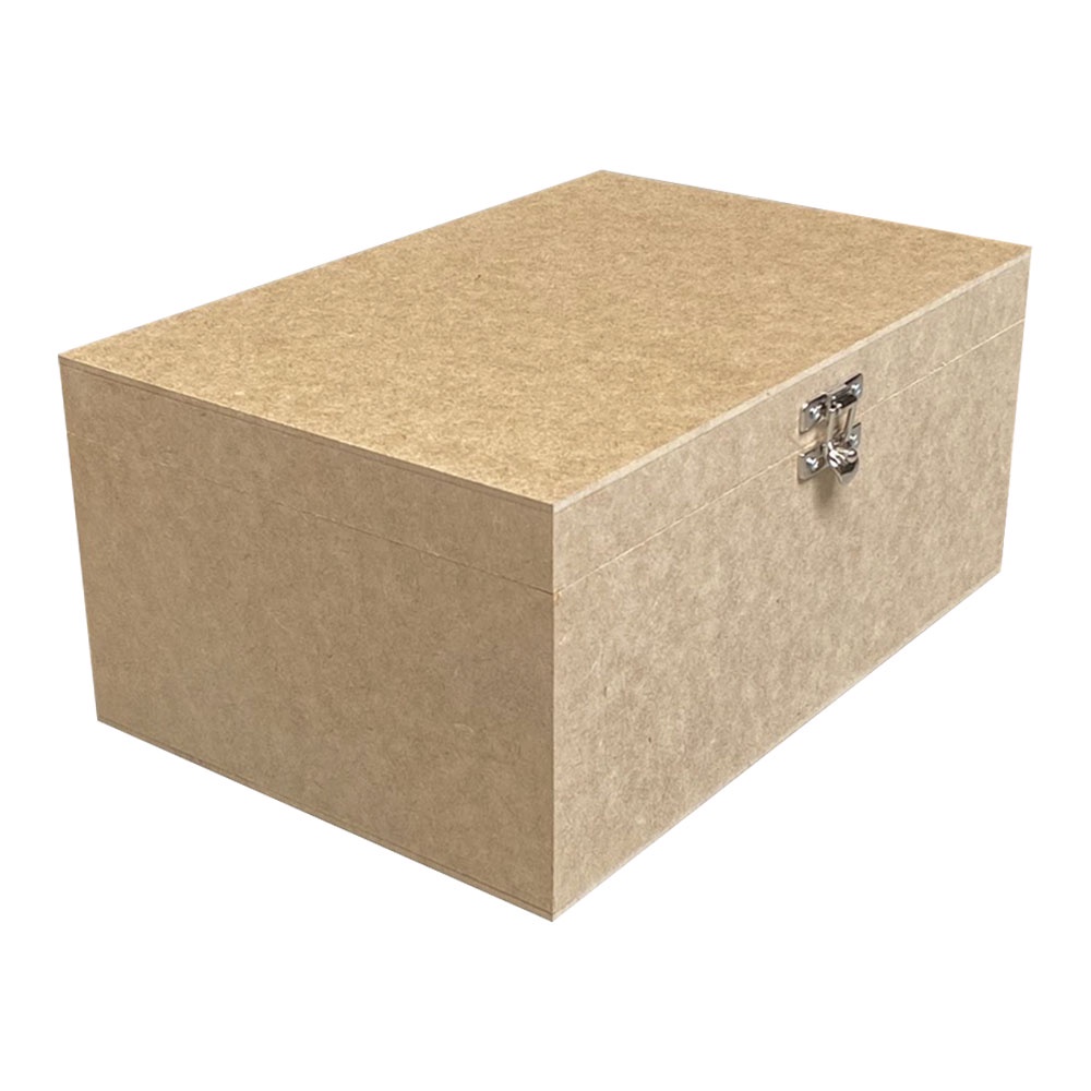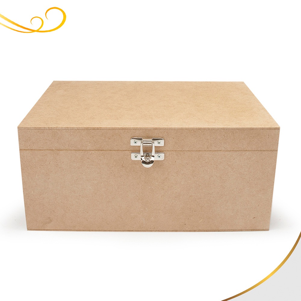 Caixa Retangular Lisa Com Dobradiça e Fecho Premium 30x20x13 - Mdf Cru