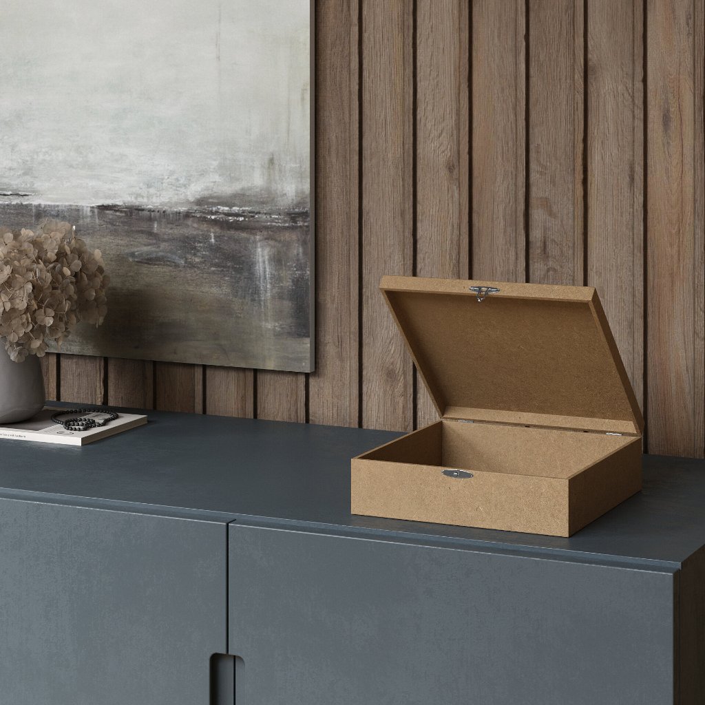 Caixa mdf lisa Quadrada 25x25x08 CRU com Fecho e Dobradiça