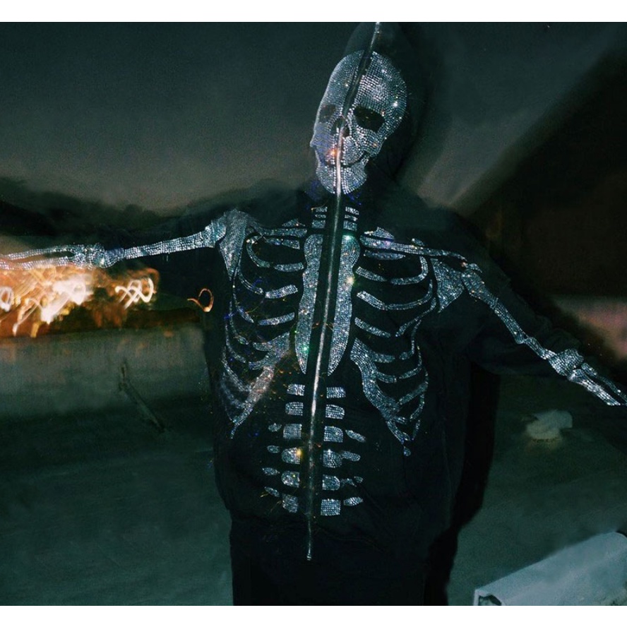 Homens Y2K Da Moda Moletom Com Capuz Strass Letra Estampa Zip De Manga Longa Tamanho Grande halloween