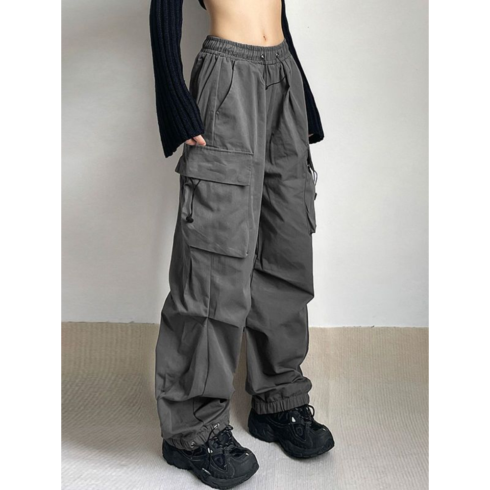 Calças Cargo extragrandes femininas, streetwear vintage, corredores de perna larga Y2K Hip Hop, moletom larga, bolsos larterais ,cargo