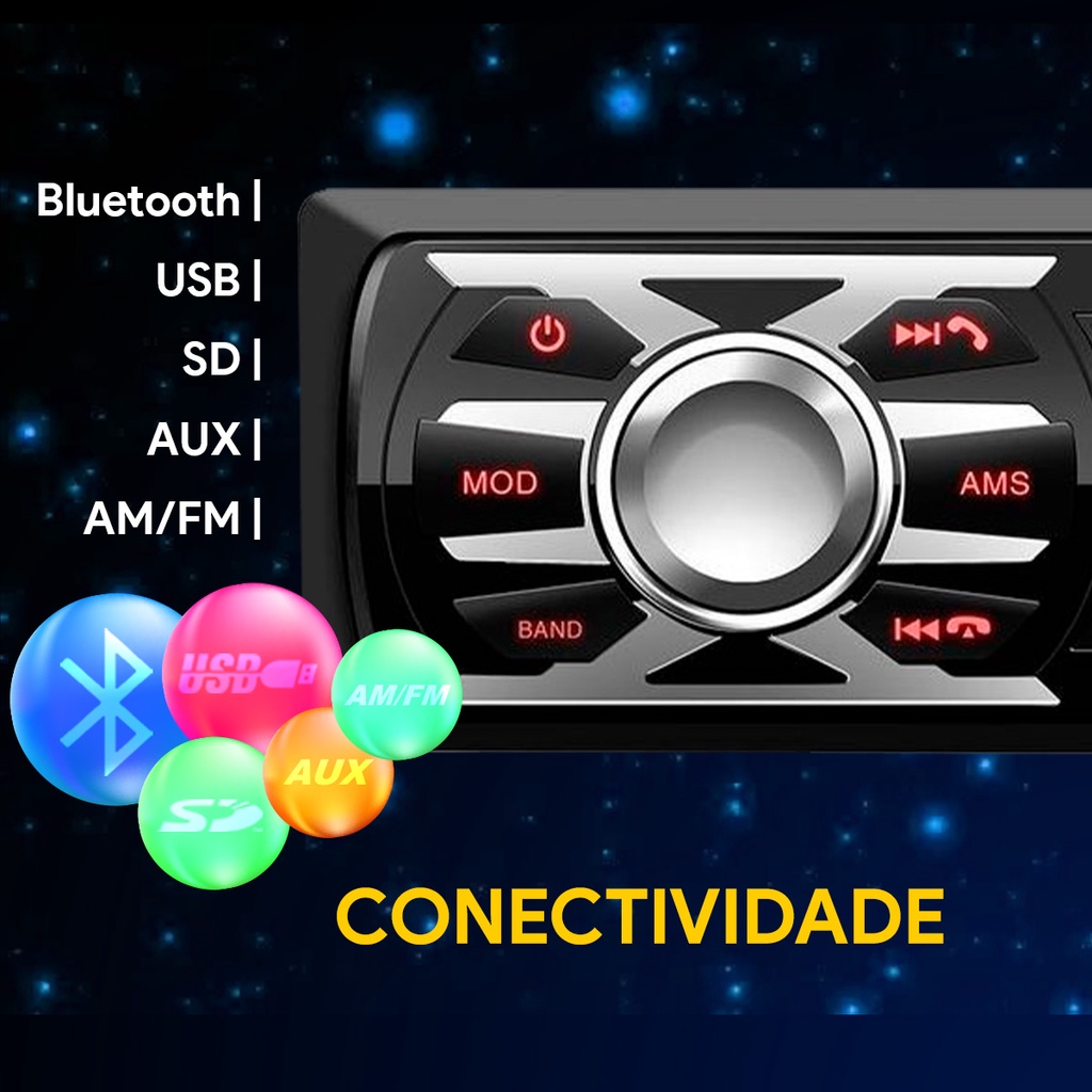 Som Automotivo Para Carro com Radio USB Bluetooth e Leitor de cartão SD Suporte Celular