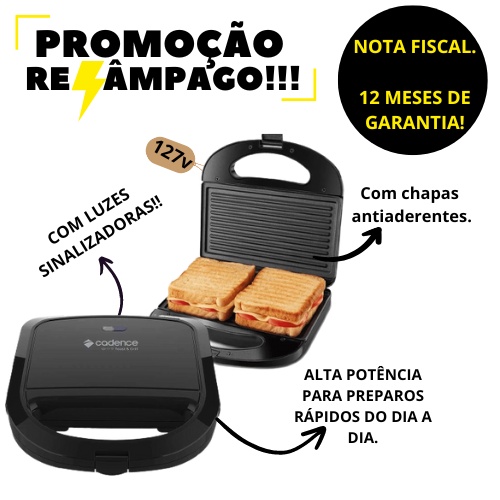 Grill Sanduicheira Click Elétrica Cadence 110v Omeleteira Misteira e Torradeira San400 127v Lançamento