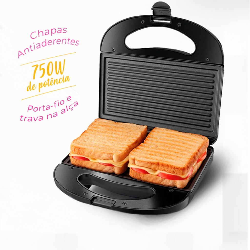 Sanduicheira Elétrica e Grill Cadence Click Preta Potência de 750W