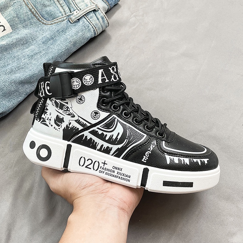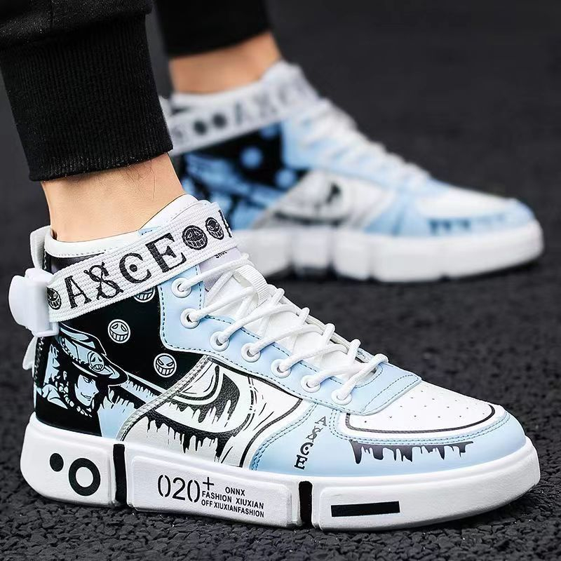 Tênis de anime de sucesso One Piece Luffy Zoro Ace Moda Trend Sapatos de cano alto