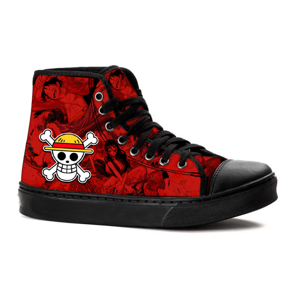 Tênis Cano Alto Caveira Chapéu de Palha One Piece Luffy Anime Pronta Entrega