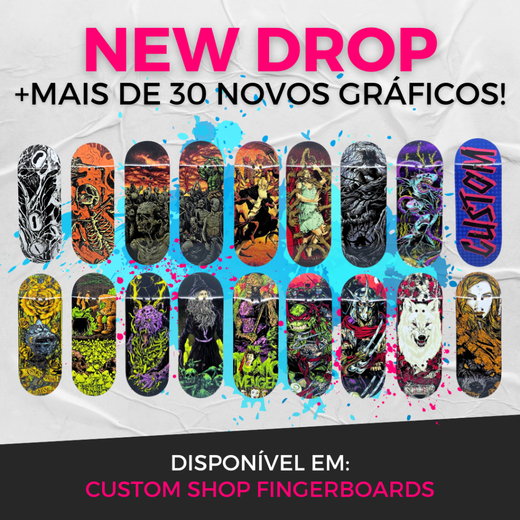 Deck / Shape Fingerboard (Skate de dedo) marca *Custom* C/ Tape e cartela de mini adesivos