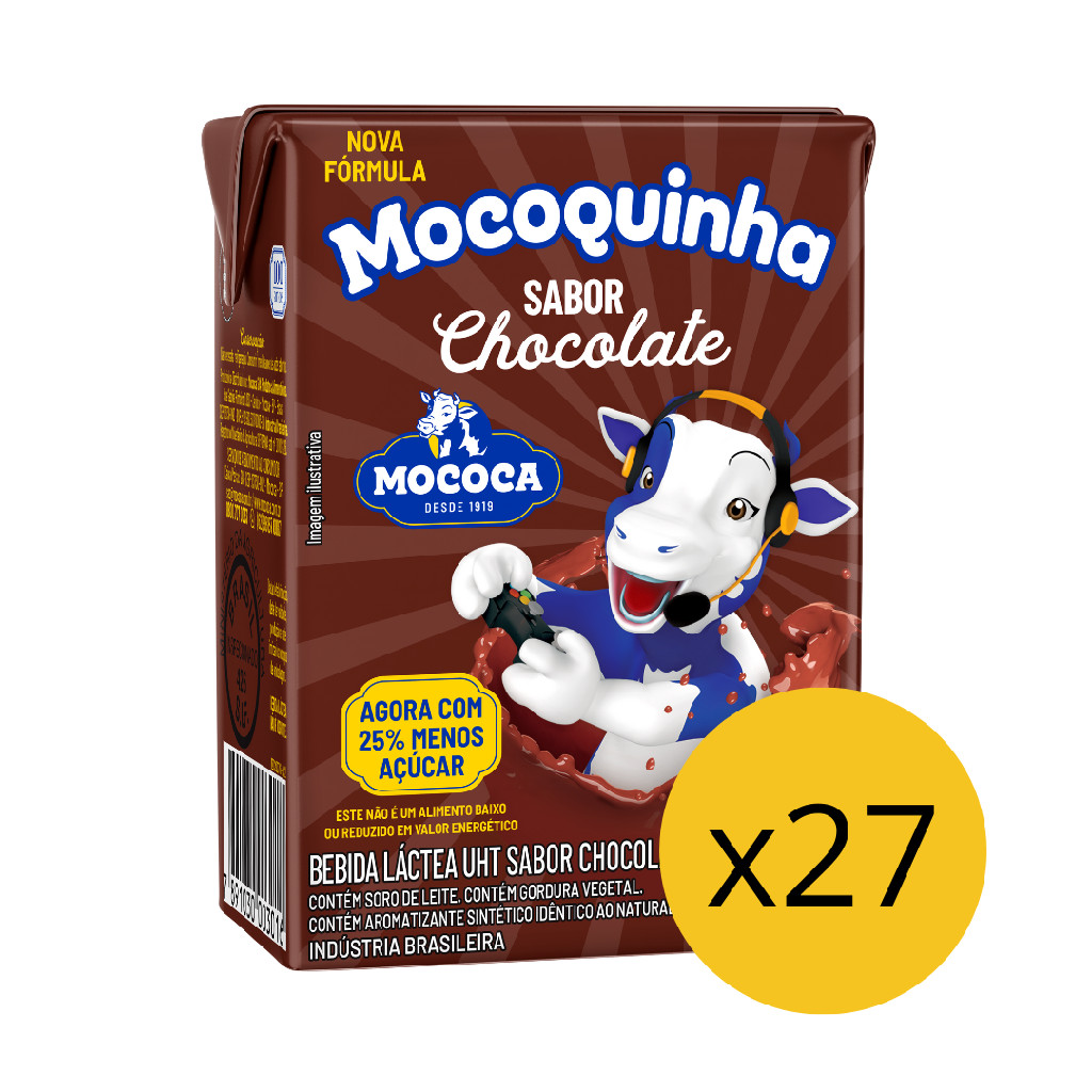 Caixa com 27un Achocolatado Pronto Bebida Láctea Chocolate Mocoquinha 200ml Mococa