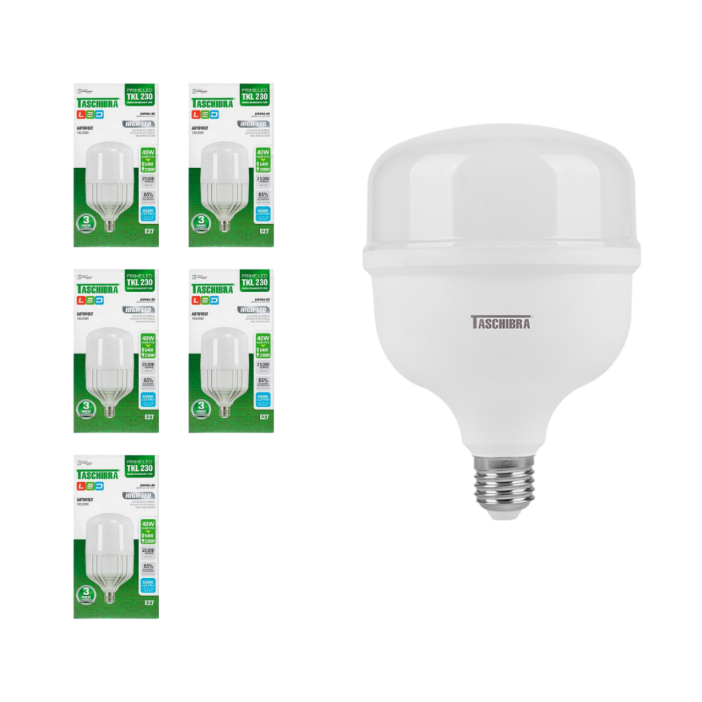 KIT COM 5 LÂMPADAS LED 40W TASCHIBRA 6500K E27