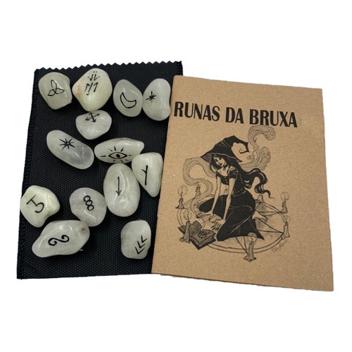 Jogo De Runas Da Bruxa Em Quartzo Azul + Manual