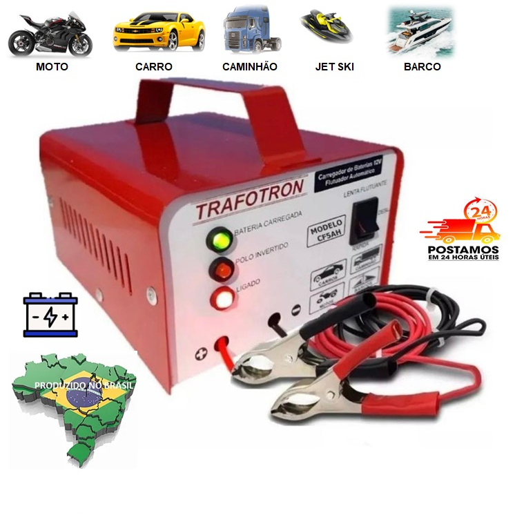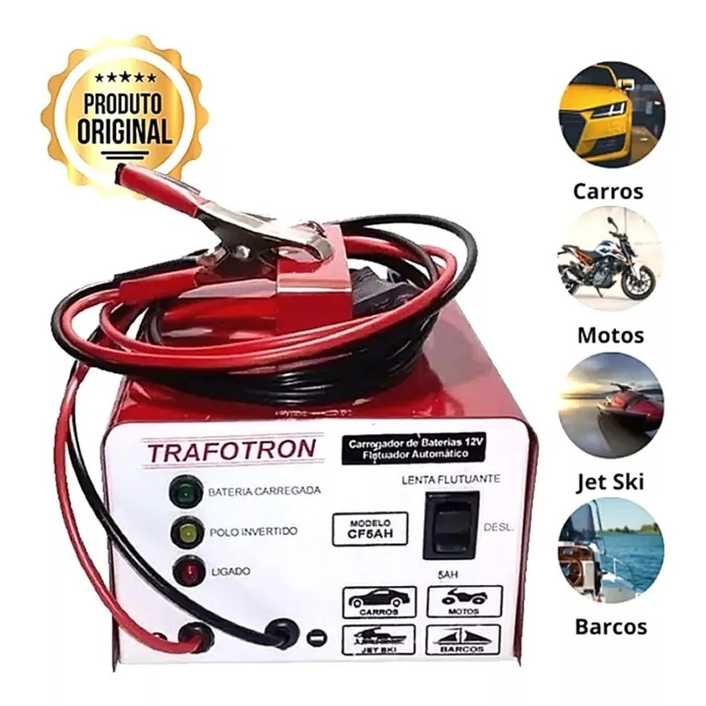 Carregador de Bateria 12v CF5 para Carro, Moto, Caminhão, Jet Sky