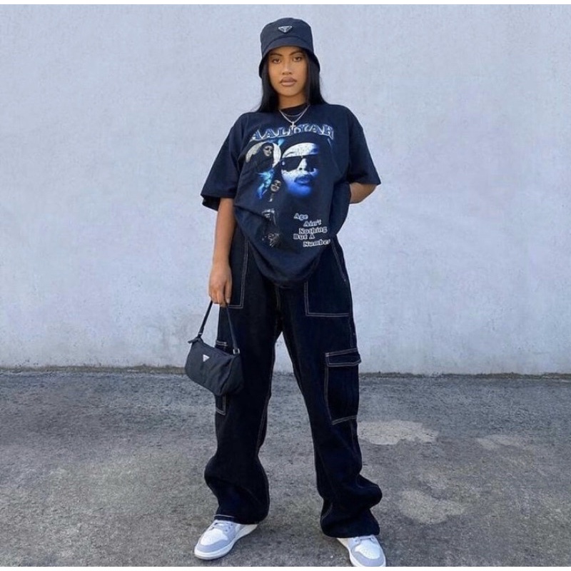 Calça cargo dazzling original preta com costura branca overzise moda masculina