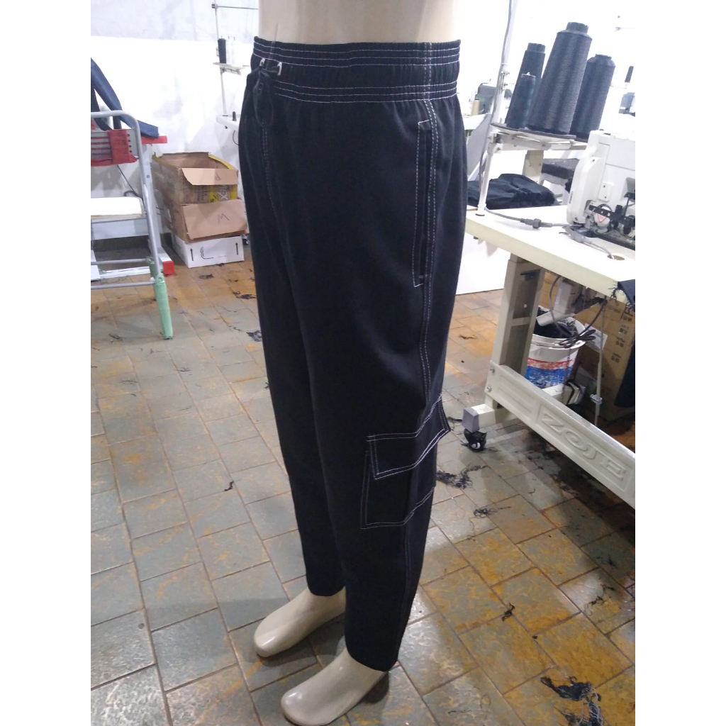 Calça Cargo Black Contraste Bolsos Laterais Elástico No Cos Preta Costura Branca Skatista Street