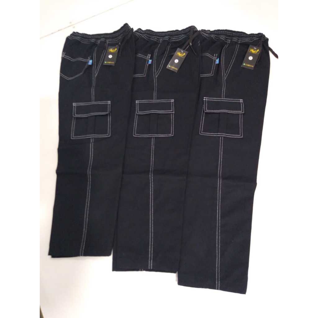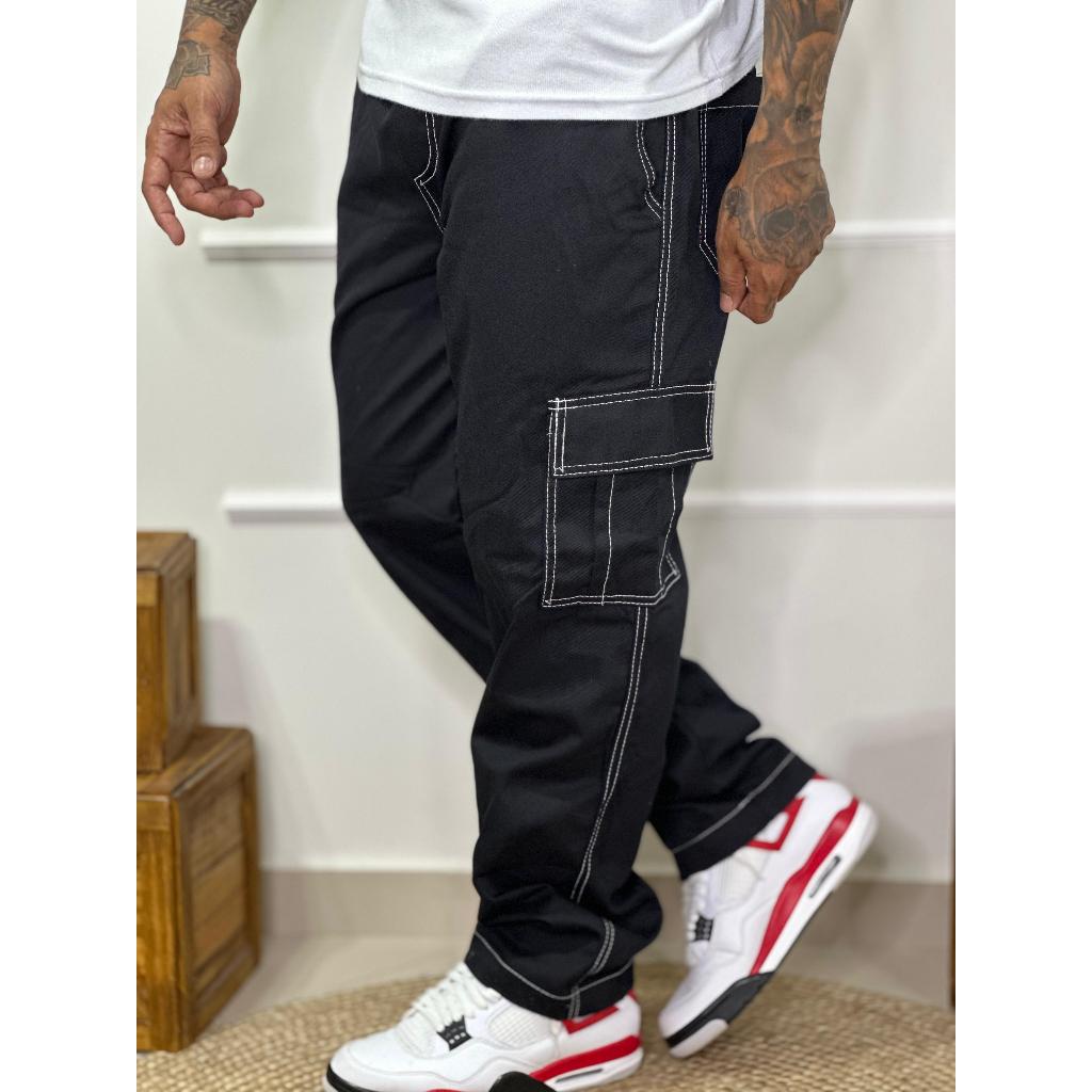Calça Cargo Skatista Unisex - Preta com costura Branca
