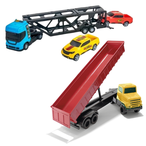 Kit Caminhao Basculante + Cegonheiro Cegonha om 2 Carinhos Brinquedo De Menino