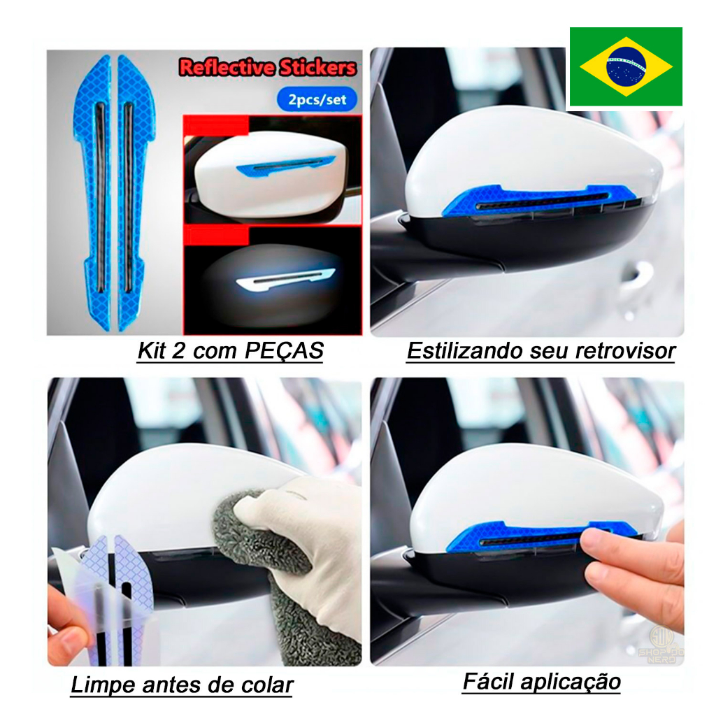 Fita Refletora Adesivo Retrovisor Carro Par Universal Alerta Sinalizadora 2 peças