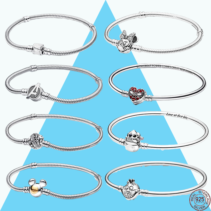 Pulseira Disney Disney Disney Disney 925 Sterling Silver Bracelet Momento Espumante Marvel Spiderman e Mickey Mouse Cobra em Forma de Coração Pulseira em Cadeia de Cobra Ladies DIY Beaded
