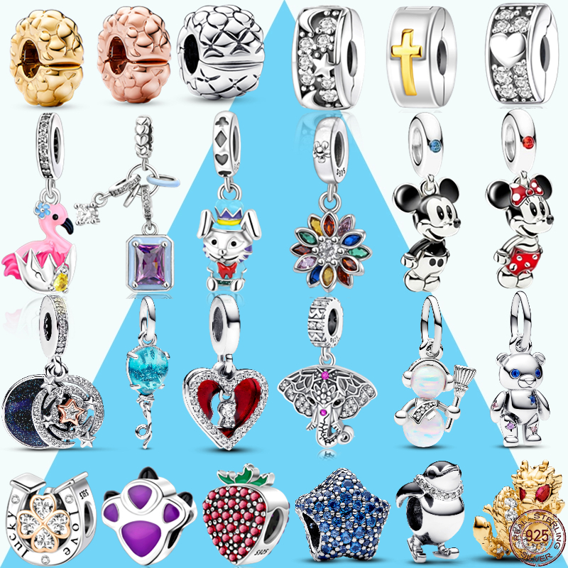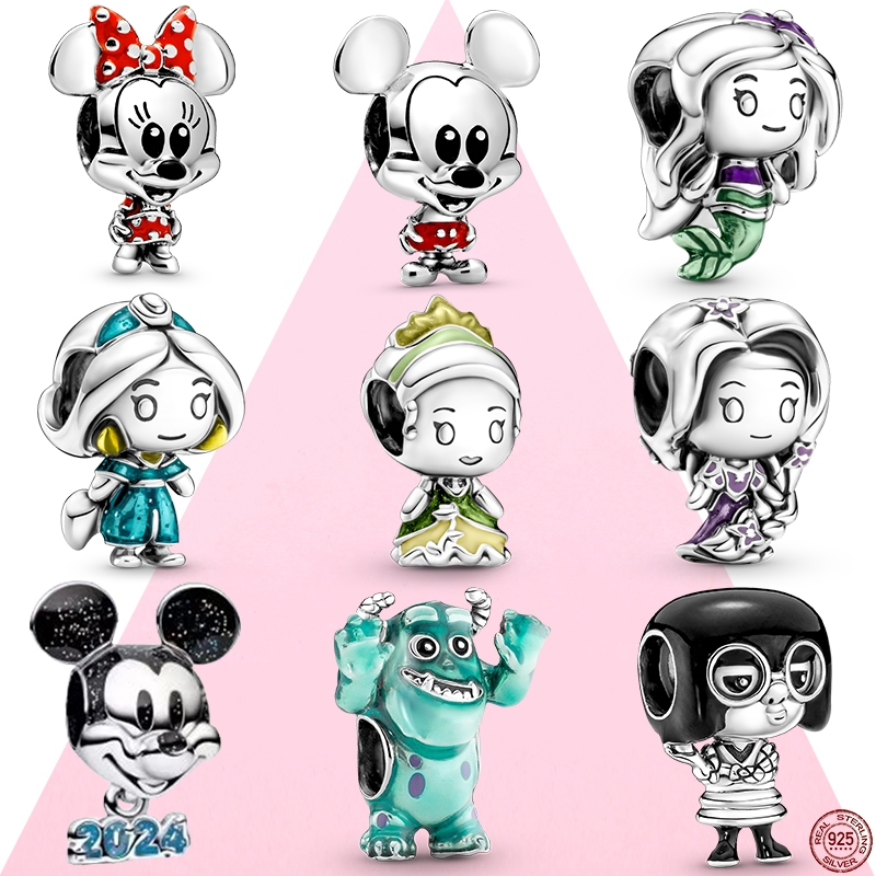 Disponível 925 Sterling Silver Pixar Series Minnie E Mickey Charm Beads Fit Pulseira De Prata Original Genuína Ladies Fashion Jewelry Gift