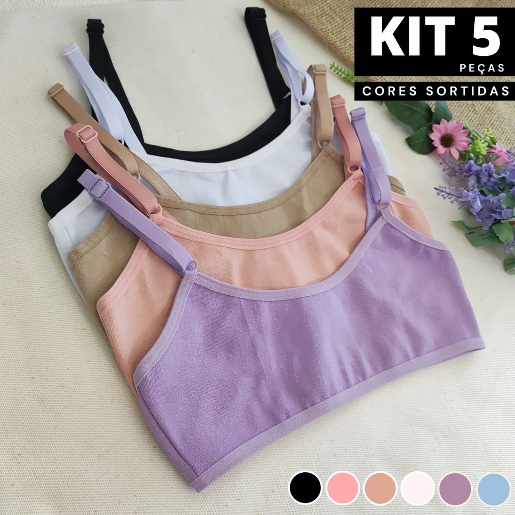Kit 5 Sutiã Infantil Sem Bojo Menina Moça Juvenil Básico Dia a Dia Conforto