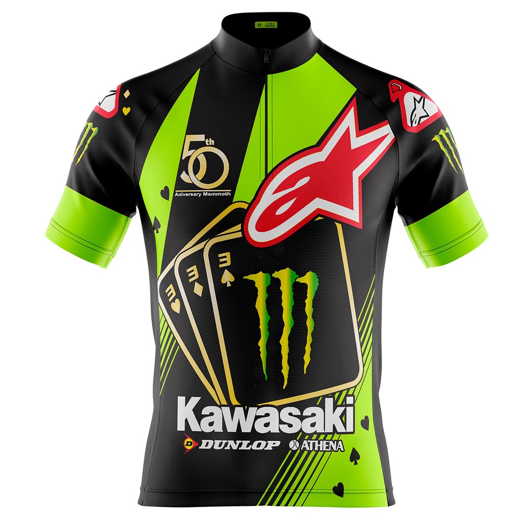 Camisa Ciclismo Camiseta Ciclista Roupa de Ciclismo Masculina Mountain Bike Kawasaki Verde Com Bolsos Protecao Solar UV50