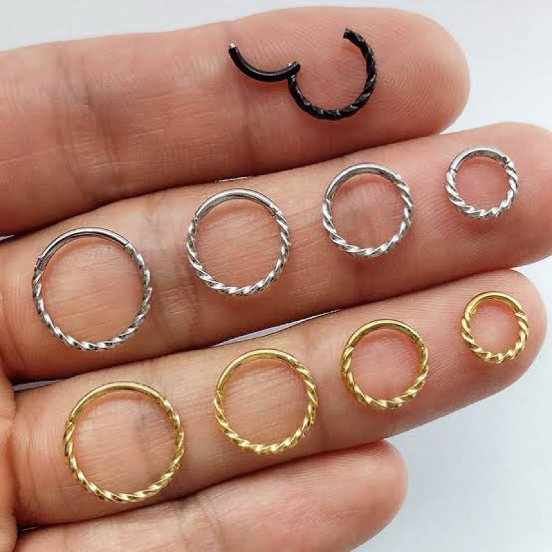 Piercing Argola Aço Cirúrgico PVD Segmento Articulado Detalhe Torcido / Septril, Rook, Conch, Nariz
