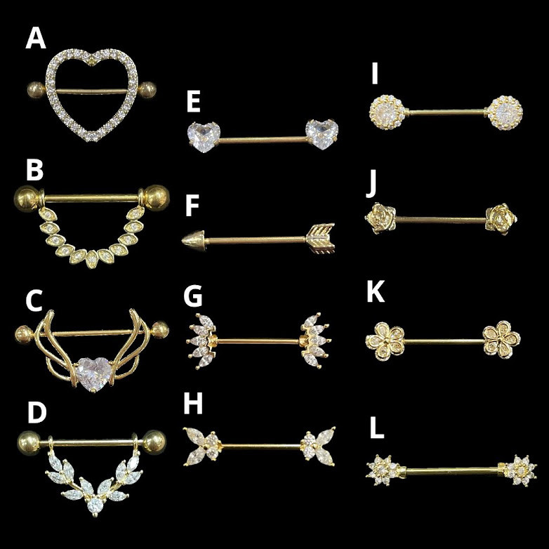 Piercing de Mamilo Aço Cirúrgico Banhado à Ouro Dourado