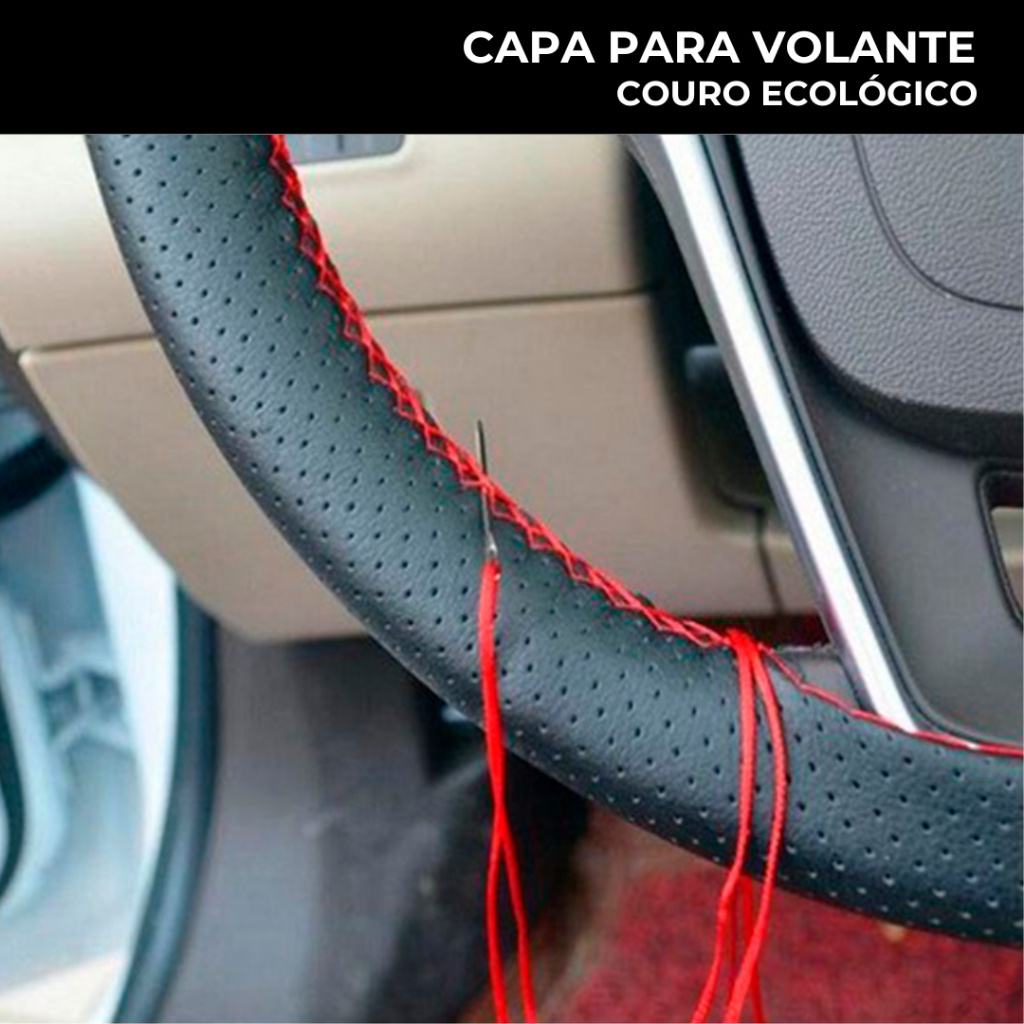 Capa de Volante Revestimento Automotivo em Couro Ecológico Costurado