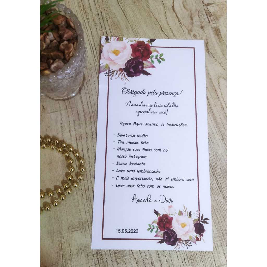 Cartão de agradecimento, casamento, aniversário, 15 anos, bodas e outros