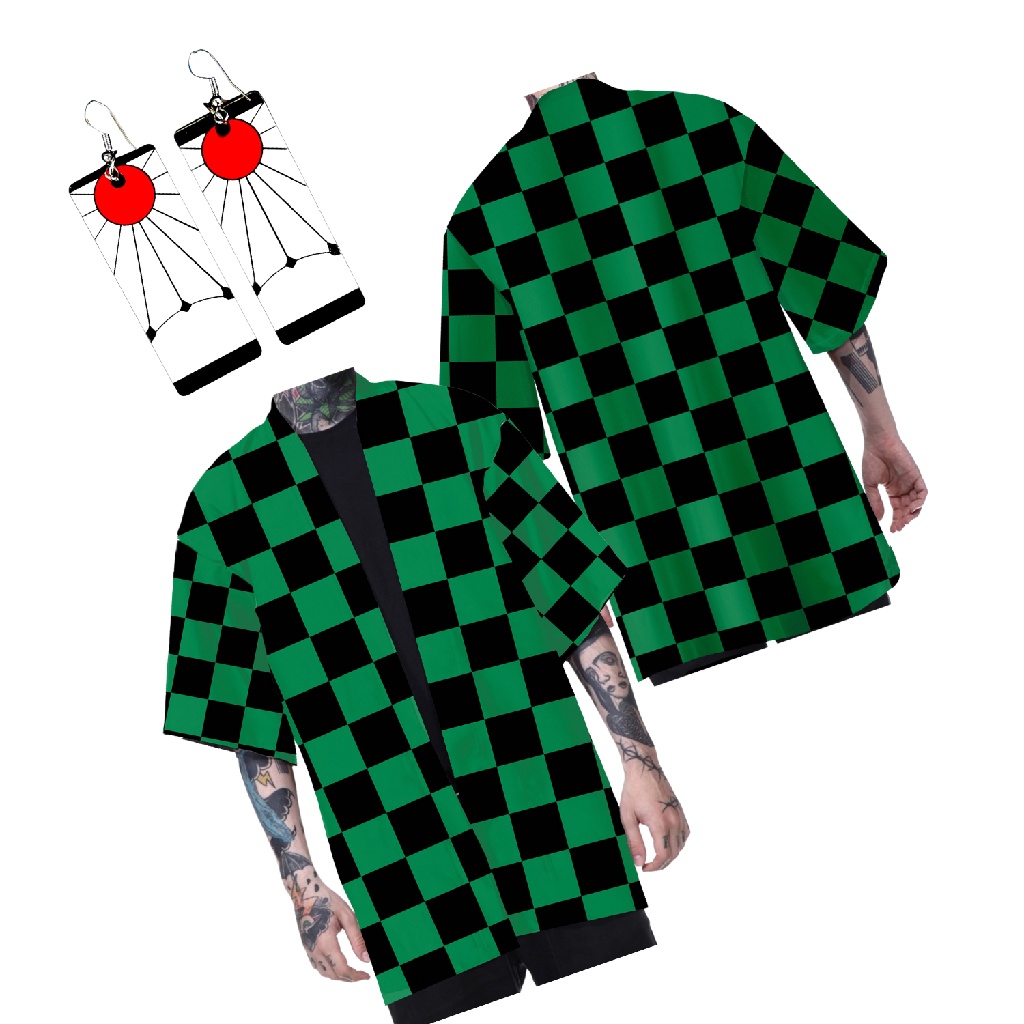 Kit Capa Kimono Demon Slayer Kimetsu No Yaiba Cosplay Tanjiro e brinco