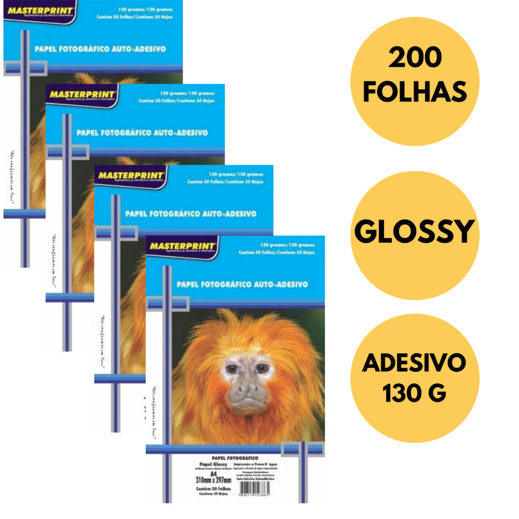 Papel Fotográfico ADESIVO 130G A4 Glossy Brilho Kit 200 Folhas À Prova D'água