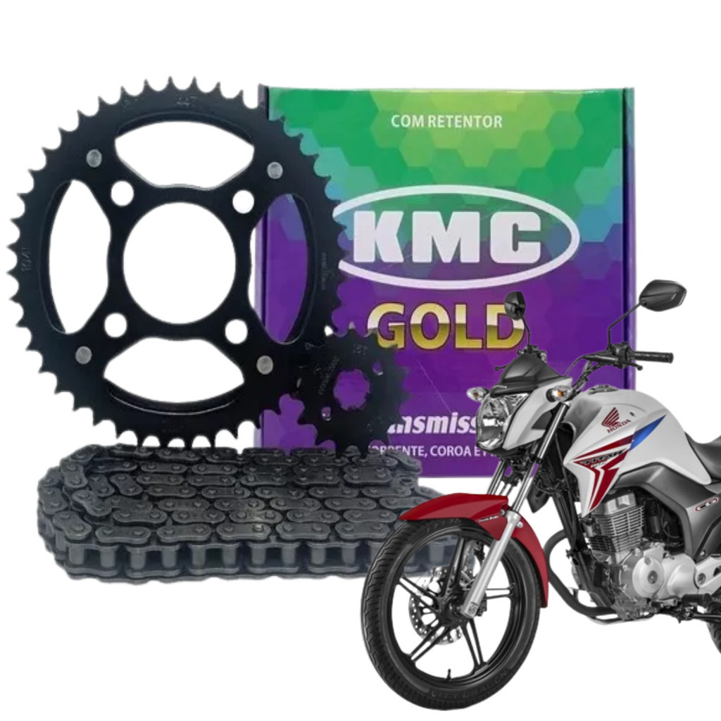Kit Relação Tração Transmissão CG TITAN FAN 150 2004 2005 2006 2007 2008 2009 2010 2011 2012 2013 2014 2015 Original KMC Com retentor