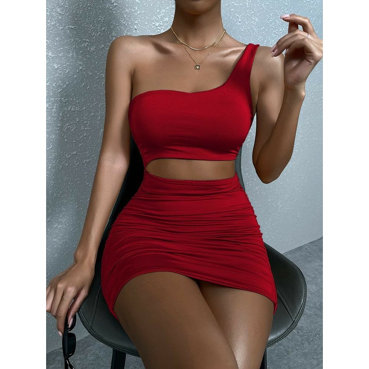 Vestido em malha canelada OMBRO SÓ com RECORTE LATERAL mini tubinho curtinho sexy para o dia a dia