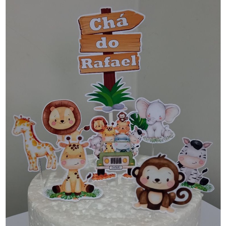 Topo de bolo personalizado para chá de bebê / aniversário ou mesversario Tema Safari / Toppers de bolo/ Decoração / Festa em casa