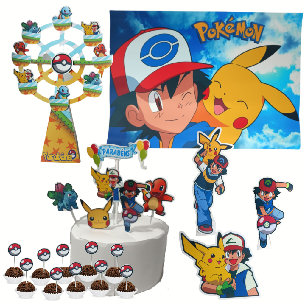 kit festa em casa só u m bolinho Pokemon decoração aniversário topo de bolo
